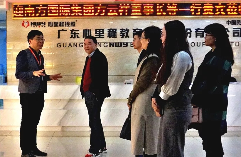 12月6日,深圳南方國際集團(tuán)董事長方云祥、深圳南方國際集團(tuán)董事長助理程則峰、有方國際教育教學(xué)經(jīng)理雷愛萍等一行蒞臨心里程集團(tuán)總部考察交流。