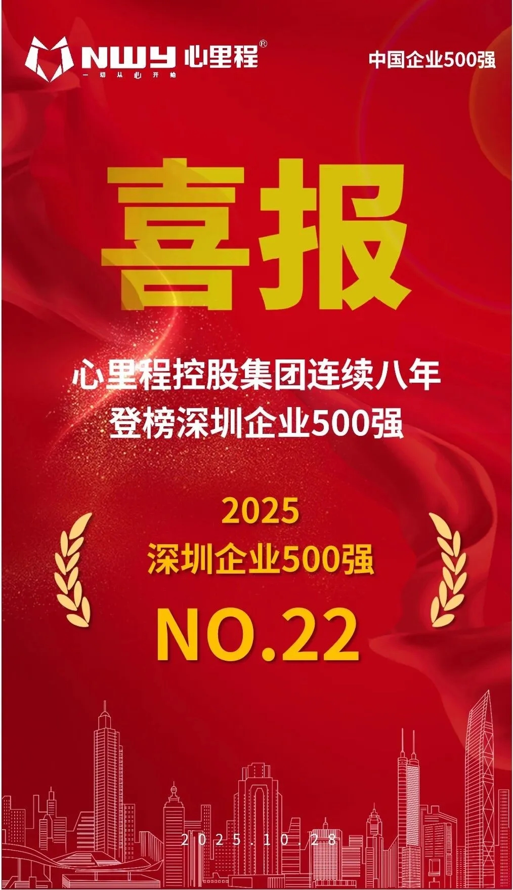 連續(xù)八年登榜!心里程集團(tuán)榮登2025深圳企業(yè)500強(qiáng)第22位(附全榜單)