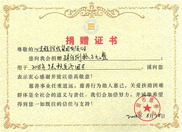 近日,心里程集團(tuán)向深圳慈善會現(xiàn)金捐款480萬元,定向用于汕尾扶貧助困、關(guān)愛助學(xué)等項目。