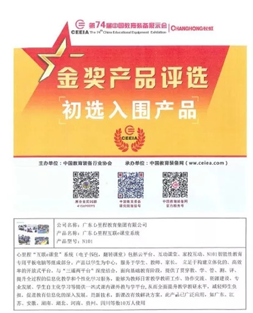 日前,在中國教育裝備行業(yè)協(xié)會(huì)組織啟動(dòng)的第74屆中國教育裝備展會(huì)金獎(jiǎng)產(chǎn)品評(píng)選活動(dòng)中,心里程教育集團(tuán)旗下產(chǎn)品——互聯(lián)e課堂成功入圍。