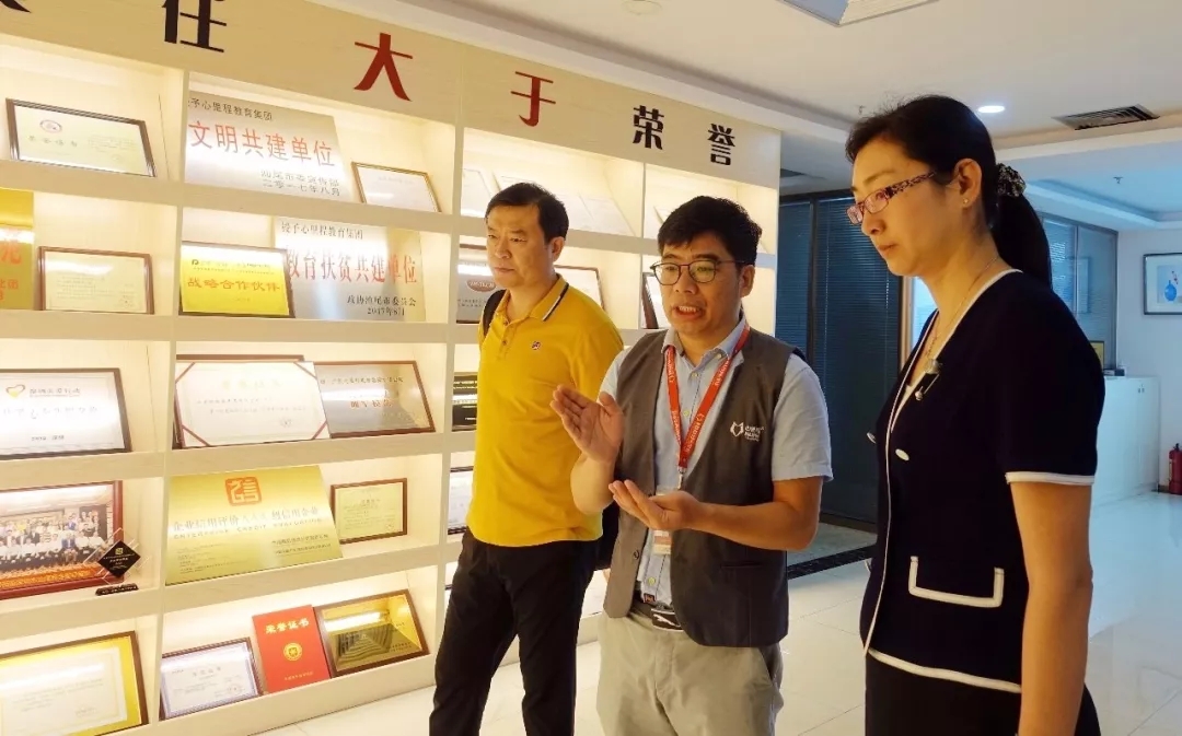 日前,心里程控股集團(tuán)總裁、深圳市教育裝備行業(yè)協(xié)會會長彭錦環(huán)率隊(duì)赴廣西扶綏縣考察,扶綏縣委常委、宣傳部部長、副縣長黃悅,縣教育局局長韋永亮等領(lǐng)導(dǎo)熱情接待了考察團(tuán)一行。