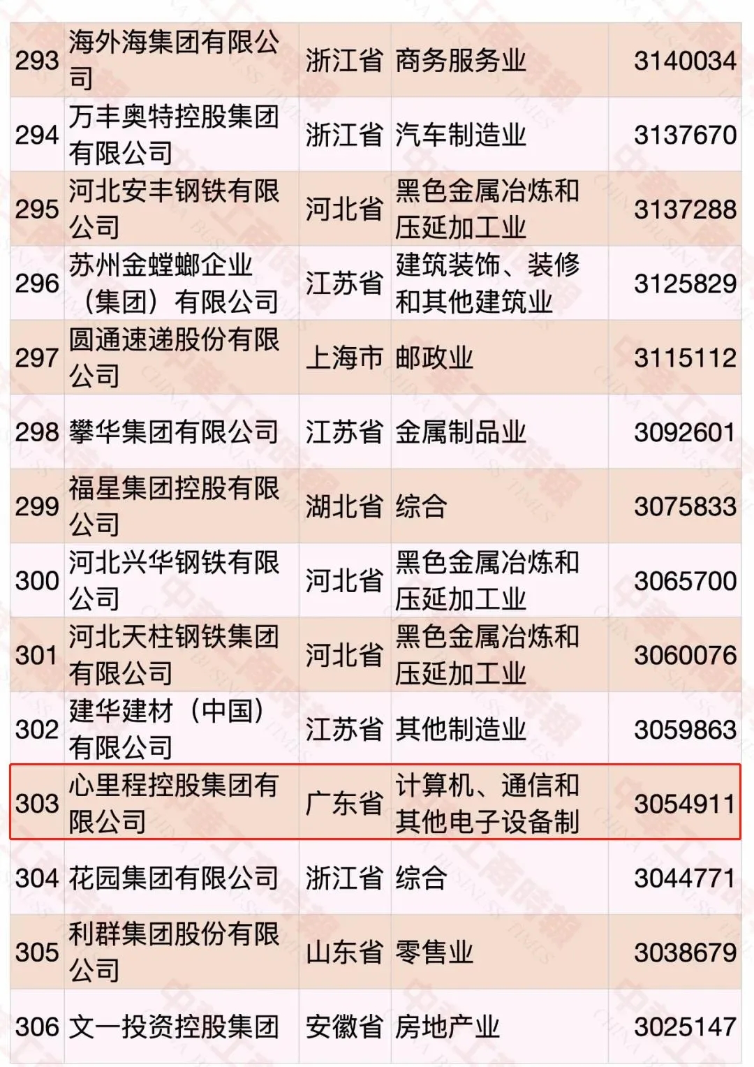 心里程集團榮登2020中國民營企業(yè)500強榜單第303位
