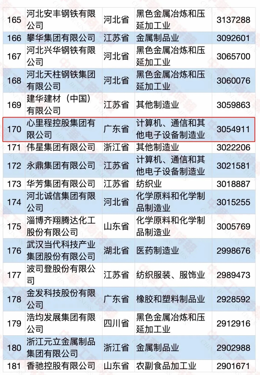 心里程集團榮登2020中國制造業(yè)民營企業(yè)500強榜單第170位