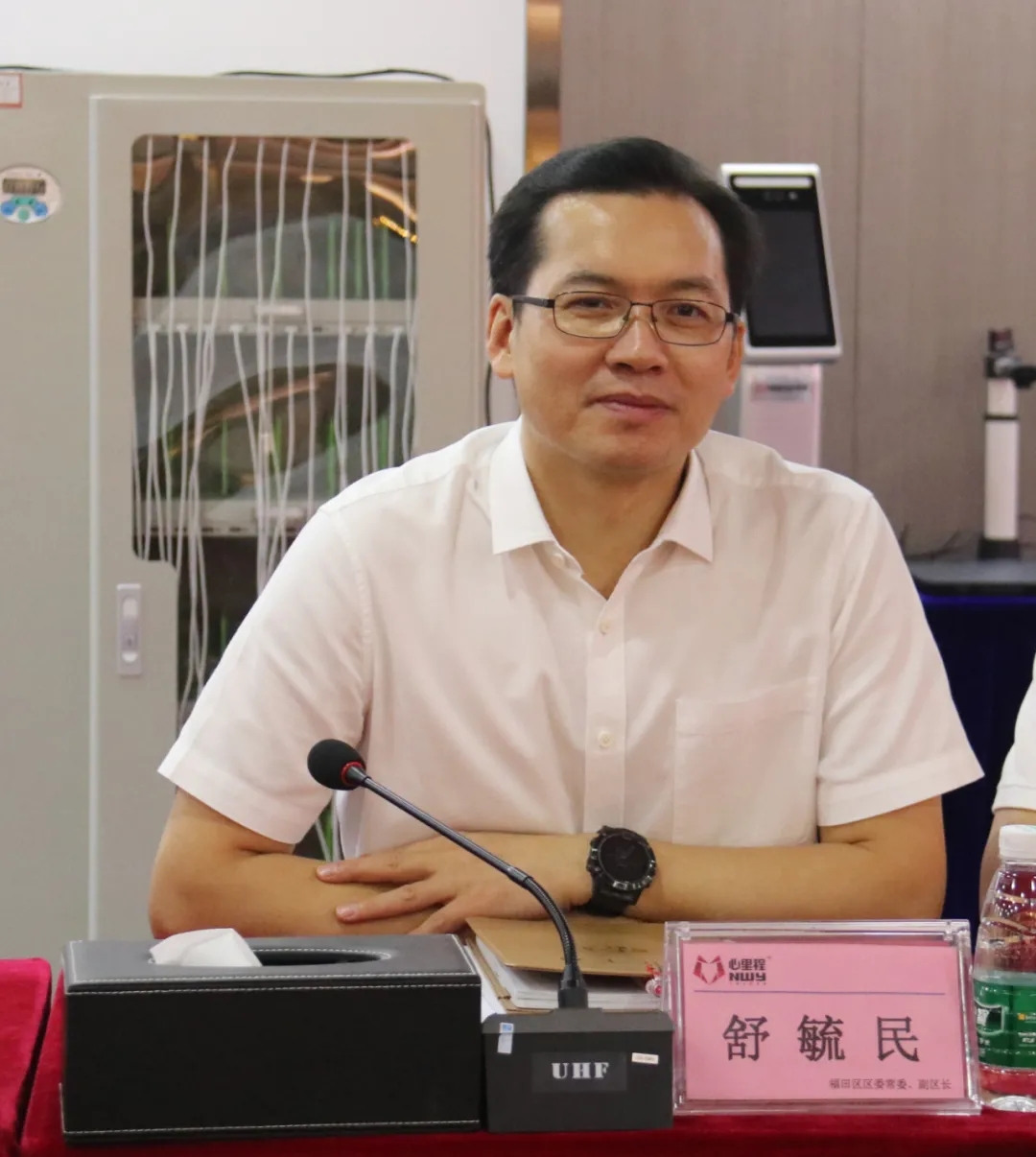 福田區(qū)工信局副局長(zhǎng)溫建國(guó)、區(qū)教育局副調(diào)研員陳森慶、區(qū)投資推廣署副署長(zhǎng)林瑞敏、太平洋水務(wù)集團(tuán)董事局主席常偉偉、太平洋建設(shè)十三集團(tuán)董事局主席王海明、太平洋建設(shè)第十集團(tuán)董事局副主席張敏、太平洋建設(shè)董辦秘書(shū)齊晨晨等參加座談。
