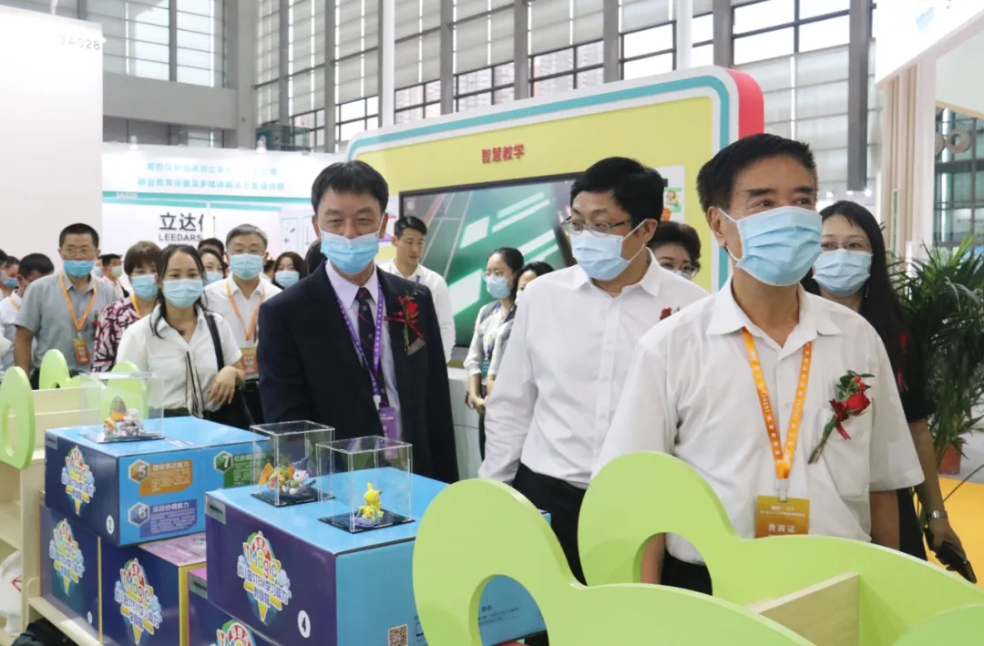 福州市教育局副局長(zhǎng)陳亮、電教館館長(zhǎng)張文輝等領(lǐng)導(dǎo)蒞臨心里程展位參觀指導(dǎo)