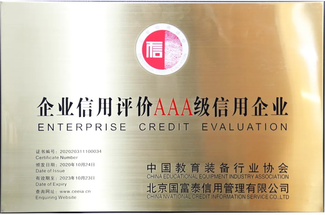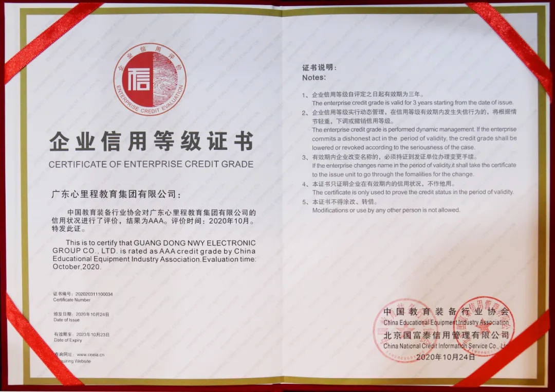 展會(huì)期間,中國教育裝備行業(yè)協(xié)會(huì)對(duì)廣東心里程教育集團(tuán)有限公司的信用狀況進(jìn)行了評(píng)價(jià),集團(tuán)榮獲AAA級(jí)信用企業(yè)評(píng)價(jià)。