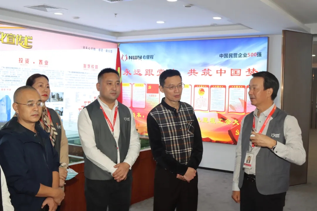 彭錦環(huán)總裁(右一)向林勇超局長(zhǎng)(右二)介紹心里程集團(tuán)