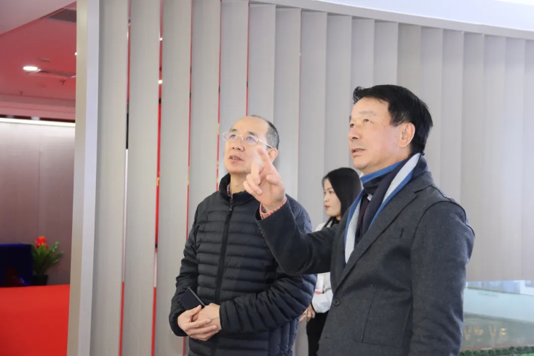 彭錦環(huán)總裁(右一)陪同鄒炎漢校長(zhǎng)(右二)參觀心里程集團(tuán)總部