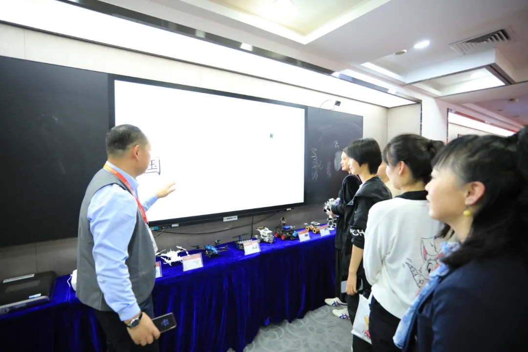 心里程黨支部副書記王九強(左一)向女民警們介紹心里程教育信息化產(chǎn)品