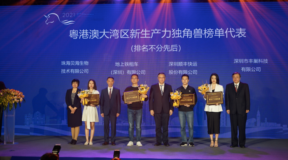 論壇上揭曉了2021粵港澳大灣區(qū)新生產(chǎn)力潛力獨(dú)角獸企業(yè)榜單