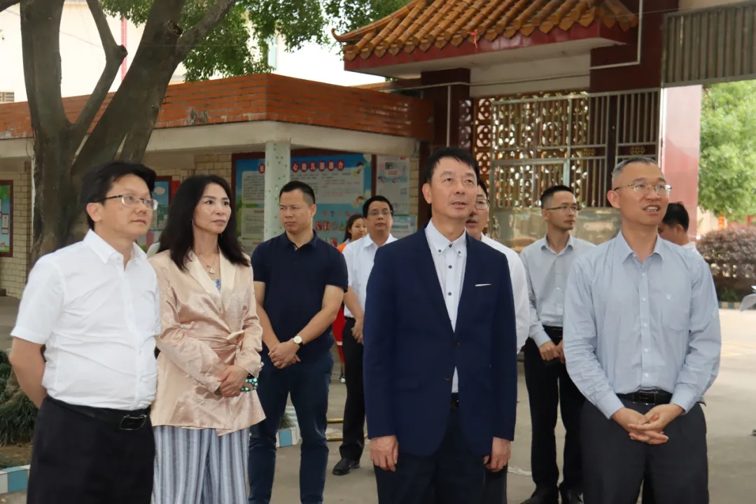 蕉嶺縣委書記陳偉明(右一)陪同彭錦環(huán)總裁(右二)參觀桂嶺學(xué)校