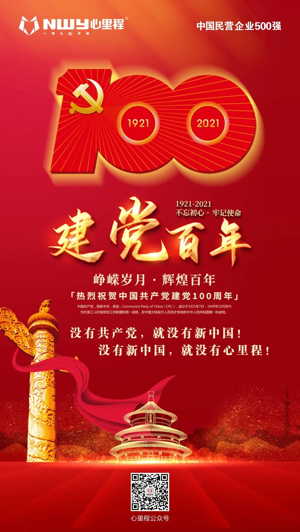 百年來,中國共產(chǎn)黨審時度勢,以全心全意為人民服務(wù)為己任,為人民求解放、謀幸福,在革命、建設(shè)和改革進(jìn)程中不斷發(fā)展壯大??梢哉f,沒有共產(chǎn)黨就沒有新中國,而心里程集團(tuán)是一家在黨和國家改革開放等政策指引下,在各級黨組織和各級政府、領(lǐng)導(dǎo),以及社會各界的關(guān)心、支持和幫助下,成長、發(fā)展、壯大起來的民營企業(yè),沒有新中國,也沒有心里程。
