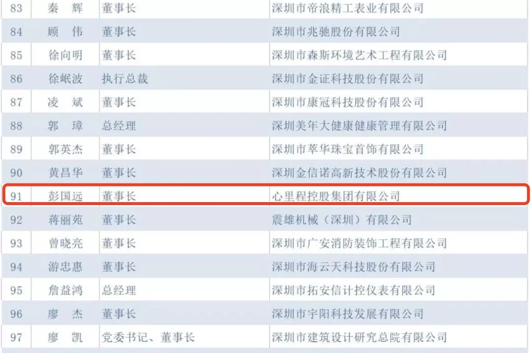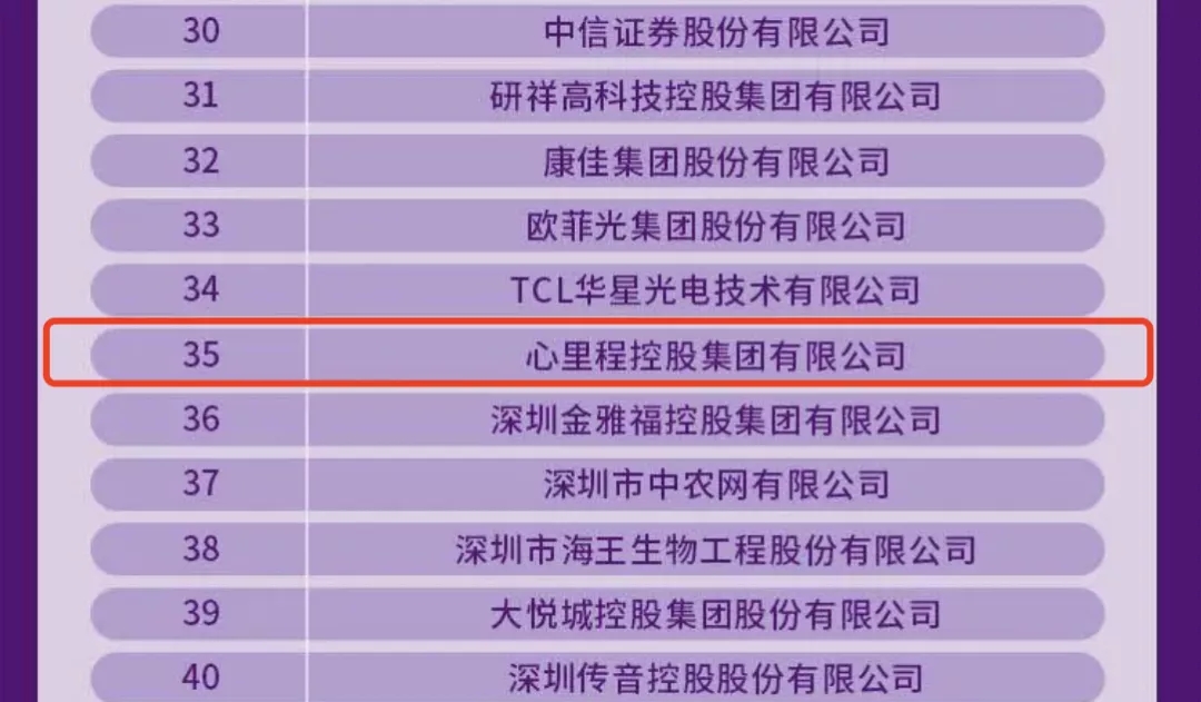 心里程集團(tuán)榮登“深圳500強(qiáng)企業(yè)”榜單第35位
