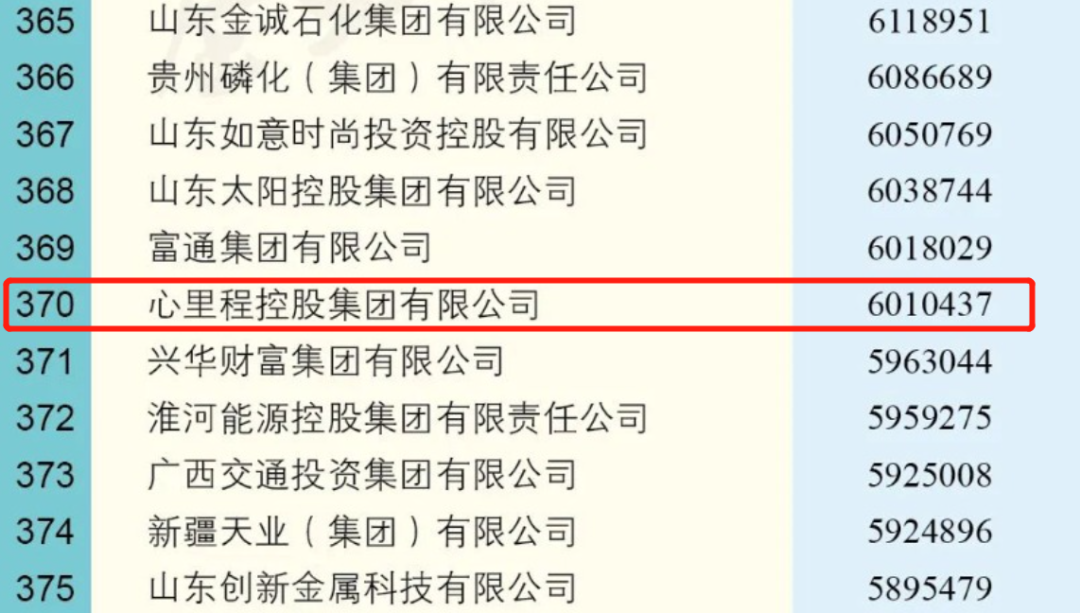 心里程集團(tuán)榮登“2022中國企業(yè)500強(qiáng)”榜單第370位