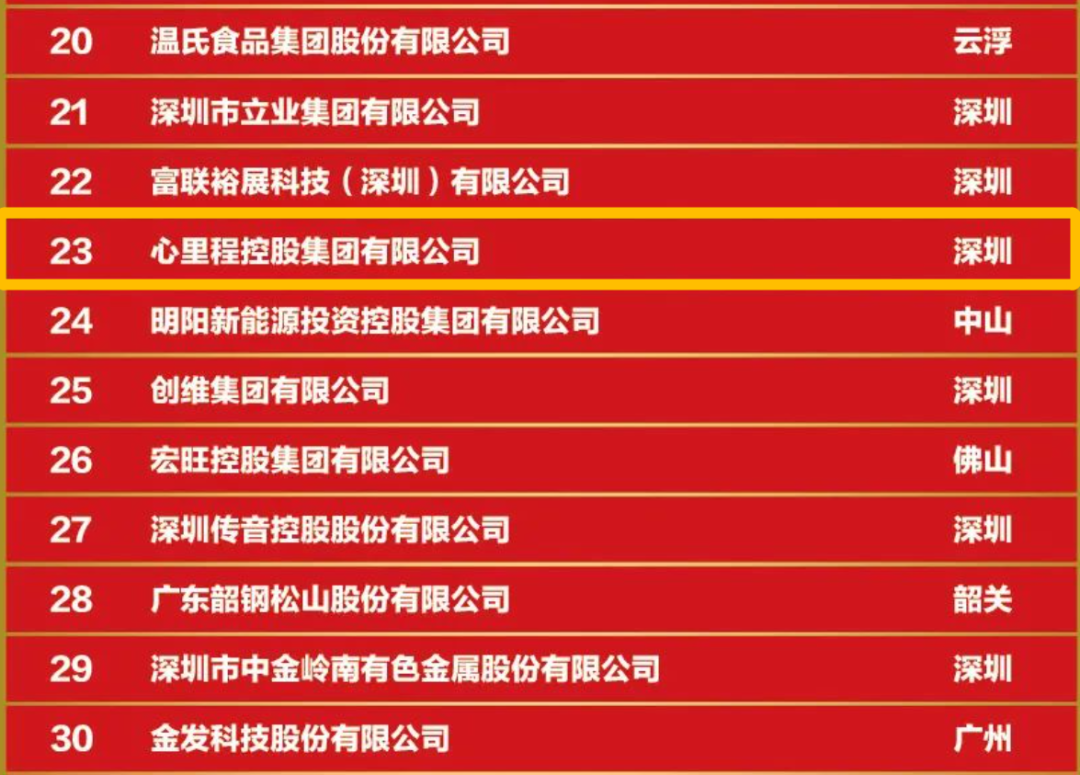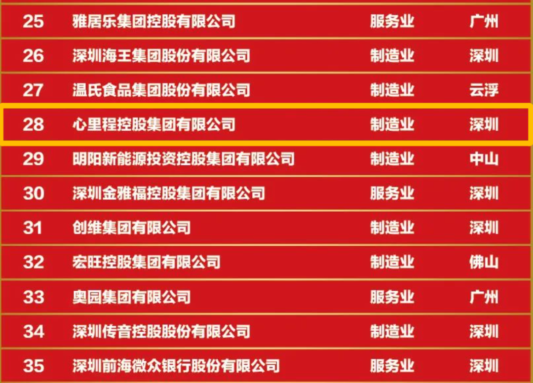 心里程集團(tuán)榮登“廣東民營(yíng)企業(yè)100強(qiáng)”榜單第28位