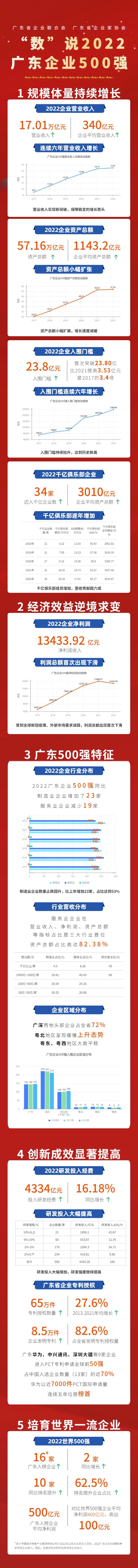 此外,2022廣東企業(yè)500強(qiáng)數(shù)據(jù)也表明,廣東大型企業(yè)在疫情防控及復(fù)雜多變的國(guó)際經(jīng)濟(jì)環(huán)境下,全面貫徹新發(fā)展理念,推動(dòng)經(jīng)濟(jì)持續(xù)恢復(fù),堅(jiān)定不移推動(dòng)高質(zhì)量發(fā)展,繼續(xù)保持增長(zhǎng)態(tài)勢(shì),在保持經(jīng)濟(jì)穩(wěn)定、優(yōu)化產(chǎn)業(yè)結(jié)構(gòu)、促進(jìn)高質(zhì)量發(fā)展中發(fā)揮著“穩(wěn)定器”“定盤(pán)星”的中堅(jiān)作用和帶動(dòng)作用,為廣東經(jīng)濟(jì)高質(zhì)量發(fā)展打下堅(jiān)實(shí)基礎(chǔ)。