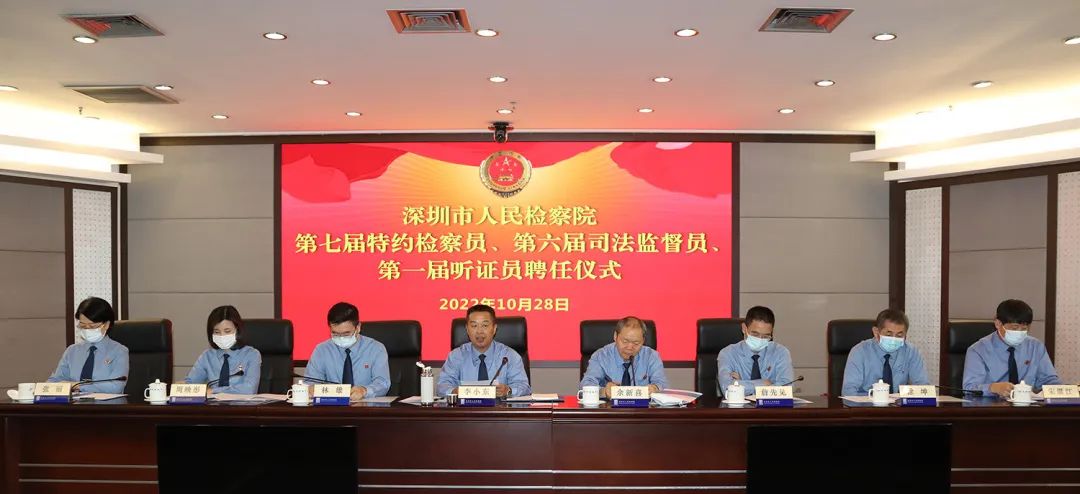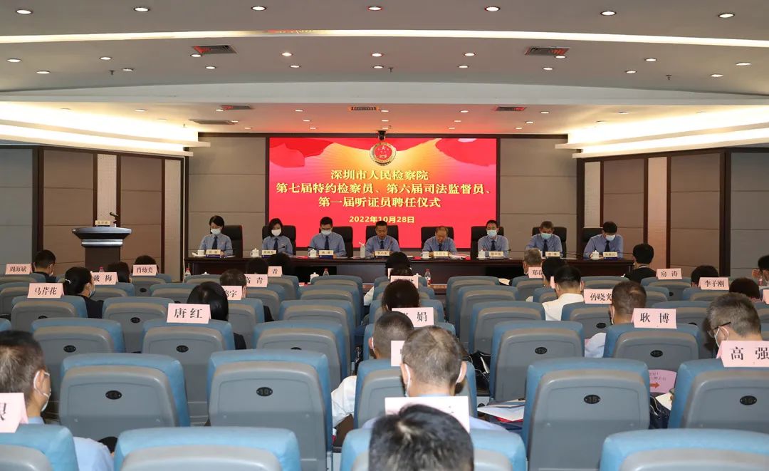 經(jīng)深圳市檢察院研究,決定聘請戴梅等29名民主黨派、無黨派、新的社會階層人士為市檢察院第七屆特約檢察員,任期五年;決定聘任馬芹花等99名市人大代表、政協(xié)委員擔任市檢察院第六屆司法監(jiān)督員,任期五年;決定聘任丁寧等72名各界專業(yè)人士擔任市檢察院第一屆聽證員,任期自2022年9月29日起至2027年9月29日止。彭國遠董事長獲聘市檢察院第六屆司法監(jiān)督員。深圳市檢察院黨組書記、檢察長李小東為“三員”代表頒發(fā)聘書。