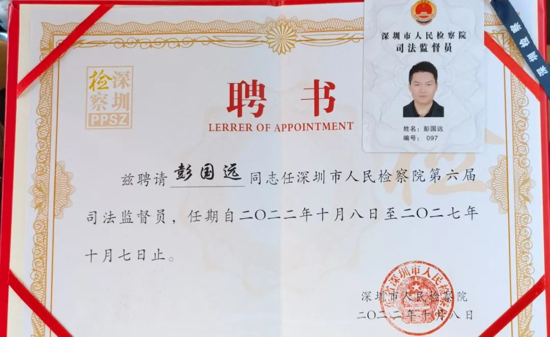 彭國遠董事長表示,非常感謝深圳市人民檢察院的信任與重托,獲聘第六屆司法監(jiān)督員,??這不只是一份榮譽,更是一份責任。在今后的工作中,將進一步加強對法律知識的學習,提高法治素養(yǎng),積極建言獻策,以高度的責任感認真履職盡責,充分發(fā)揮好監(jiān)督員的橋梁作用和監(jiān)督作用。一方面,廣泛聽取社會各界對改進和完善檢察院工作的中肯意見和建議,另一方面,積極向社會傳遞檢察院的聲音,增進社會各界對檢察院工作的認同理解。