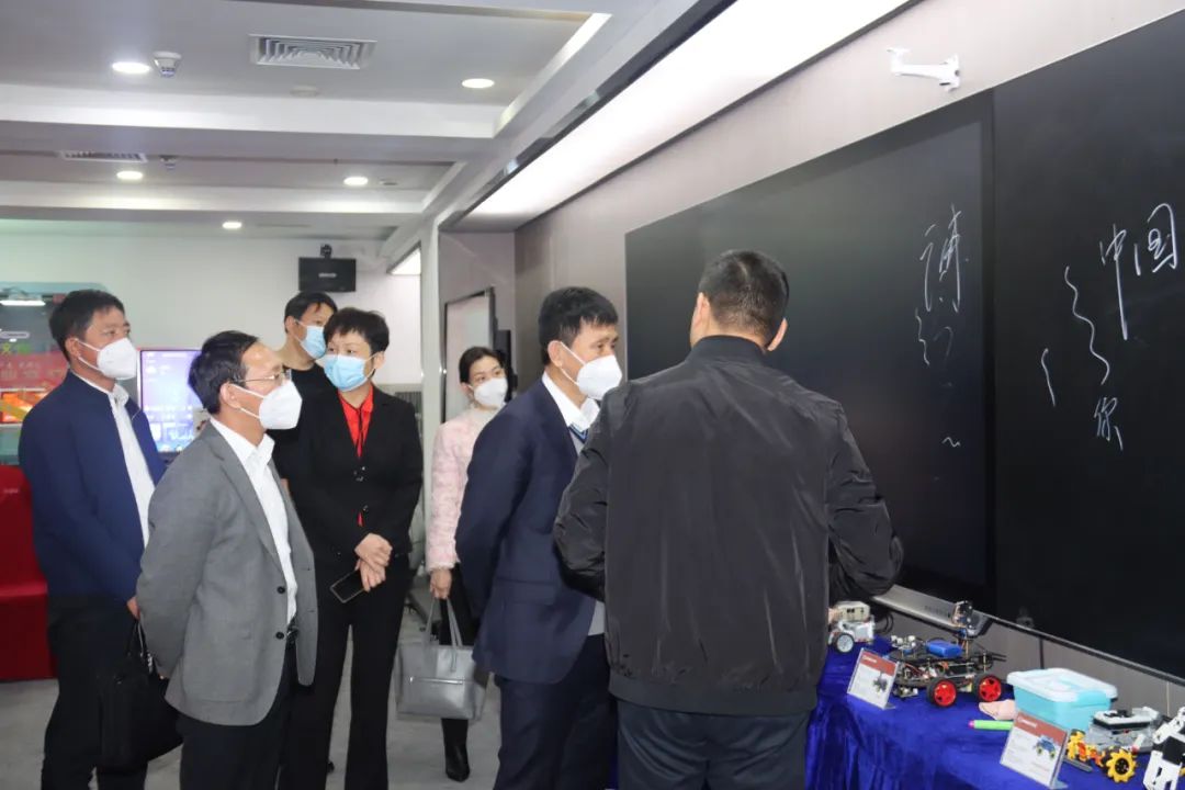 廣東心里程產(chǎn)業(yè)投資集團副董事長張玉(右一)向匡曉衛(wèi)書記(右二)介紹心里程智慧教育產(chǎn)品