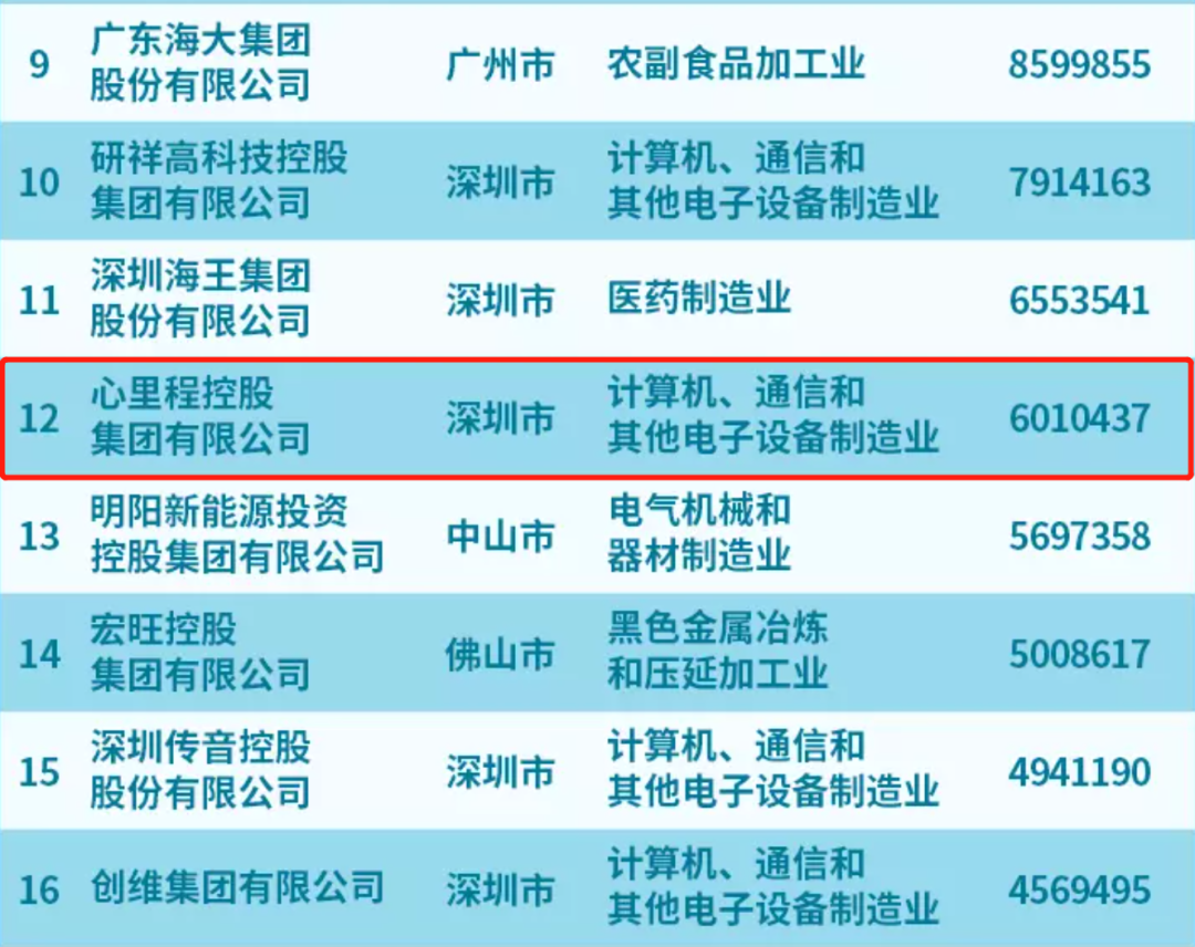 心里程集團榮登“2022廣東省制造業(yè)民營企業(yè)100強”榜單第12位