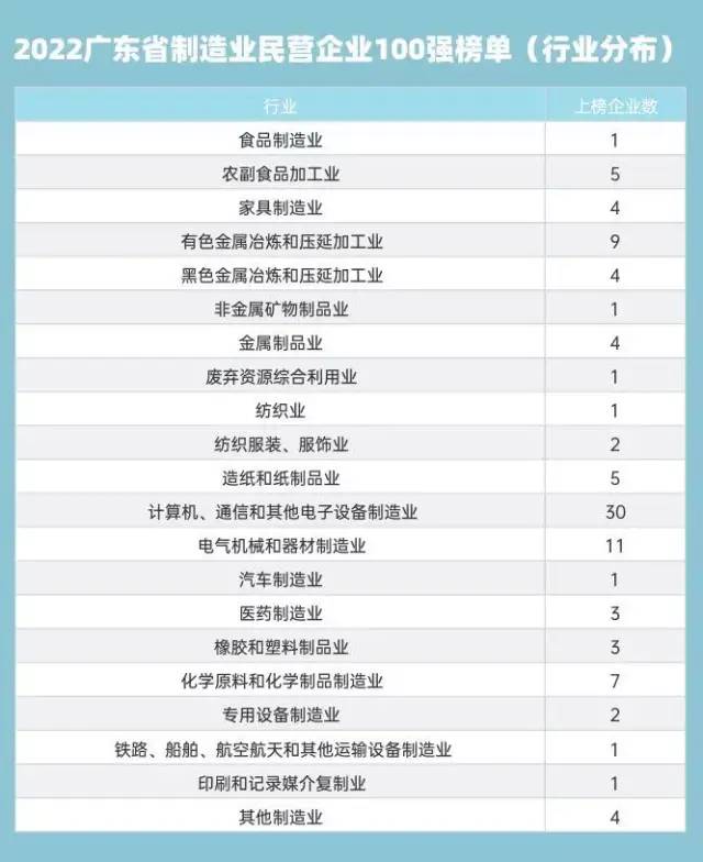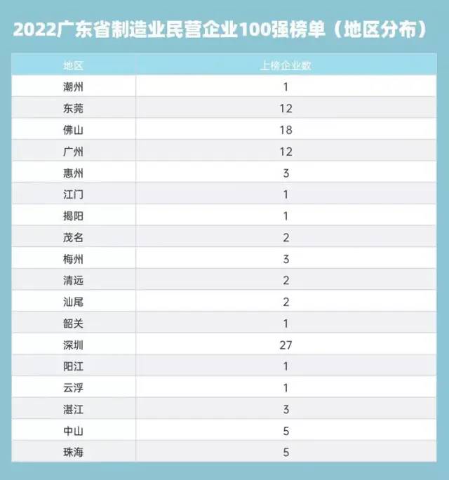 2022廣東省制造業(yè)民營企業(yè)100強