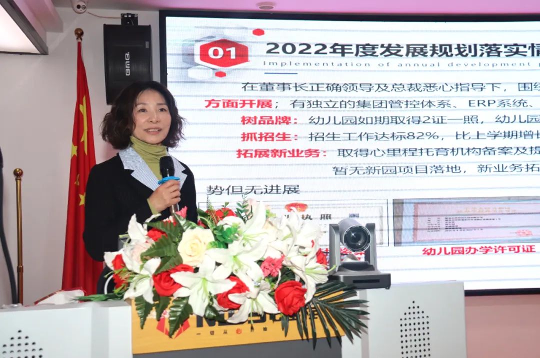 心里程教育投資集團(tuán)常務(wù)副總裁劉秀禎詳細(xì)回顧了教育投資集團(tuán)2022年的主要工作,并就公司2023年的重點(diǎn)工作作詳細(xì)部署。她指出,2022年,幼教集團(tuán)在董事長(zhǎng)正確領(lǐng)導(dǎo)及總裁悉心指導(dǎo)下,圍繞2022年度規(guī)劃,從幼兒園樹品牌、抓招生,拓展新園新業(yè)務(wù)三方面開展;有獨(dú)立的集團(tuán)管控體系、ERP系統(tǒng)、考勤系統(tǒng),并正式更名為心里程教育投資集團(tuán)有限公司。站在新的征程,心里程教育投資集團(tuán)將在彭國(guó)遠(yuǎn)董事長(zhǎng)等領(lǐng)導(dǎo)的正確領(lǐng)導(dǎo)下,在全體成員及園所教職工的共同努力下,不忘初心、繼續(xù)前進(jìn),在科技啟蒙領(lǐng)域及未來(lái)人才培養(yǎng)方向上做出更多的貢獻(xiàn)。