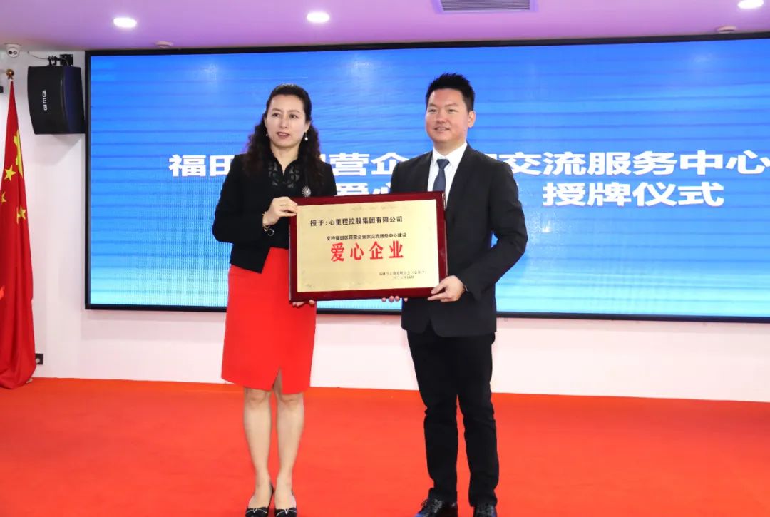 吳歡常委為心里程集團(tuán)頒發(fā)“愛心企業(yè)”牌匾