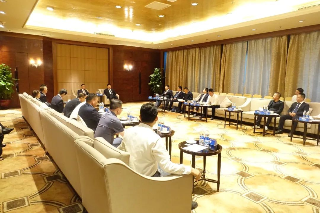 張百順市長(zhǎng)(中)會(huì)前會(huì)見(jiàn)彭國(guó)遠(yuǎn)董事長(zhǎng)(右一)等嘉賓