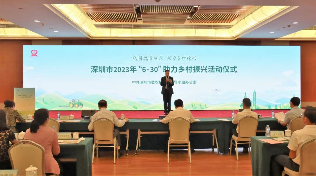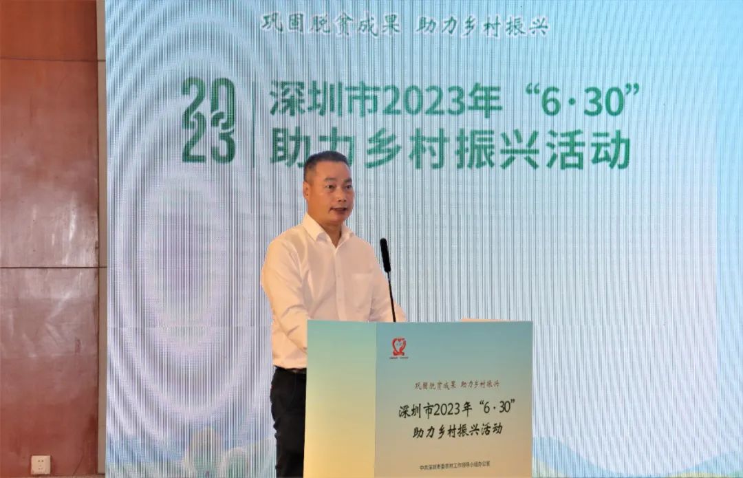 活動(dòng)現(xiàn)場(chǎng),深圳市政府副秘書(shū)長(zhǎng)張晉周宣讀深圳市2023年“6·30”助力鄉(xiāng)村振興活動(dòng)倡議書(shū),號(hào)召全市黨政機(jī)關(guān)、企事業(yè)單位、社會(huì)組織和各界愛(ài)心人士,聚焦增強(qiáng)脫貧地區(qū)和脫貧群眾內(nèi)生發(fā)展動(dòng)力,做全面推進(jìn)鄉(xiāng)村振興的主動(dòng)參與者,做著力促進(jìn)共同富裕的先行踐行者,為推動(dòng)城鄉(xiāng)區(qū)域協(xié)調(diào)發(fā)展向更高水平更高質(zhì)量作出新的更大貢獻(xiàn)。
