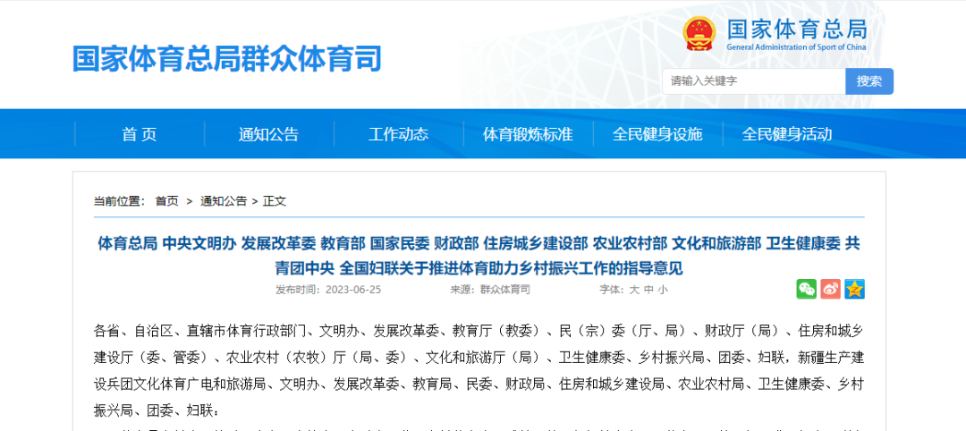 近日,國(guó)家體育總局等十二部委印發(fā)了《關(guān)于推進(jìn)體育助力鄉(xiāng)村振興工作的指導(dǎo)意見(jiàn)》(以下簡(jiǎn)稱《意見(jiàn)》),協(xié)力推進(jìn)體育助力鄉(xiāng)村振興工作。