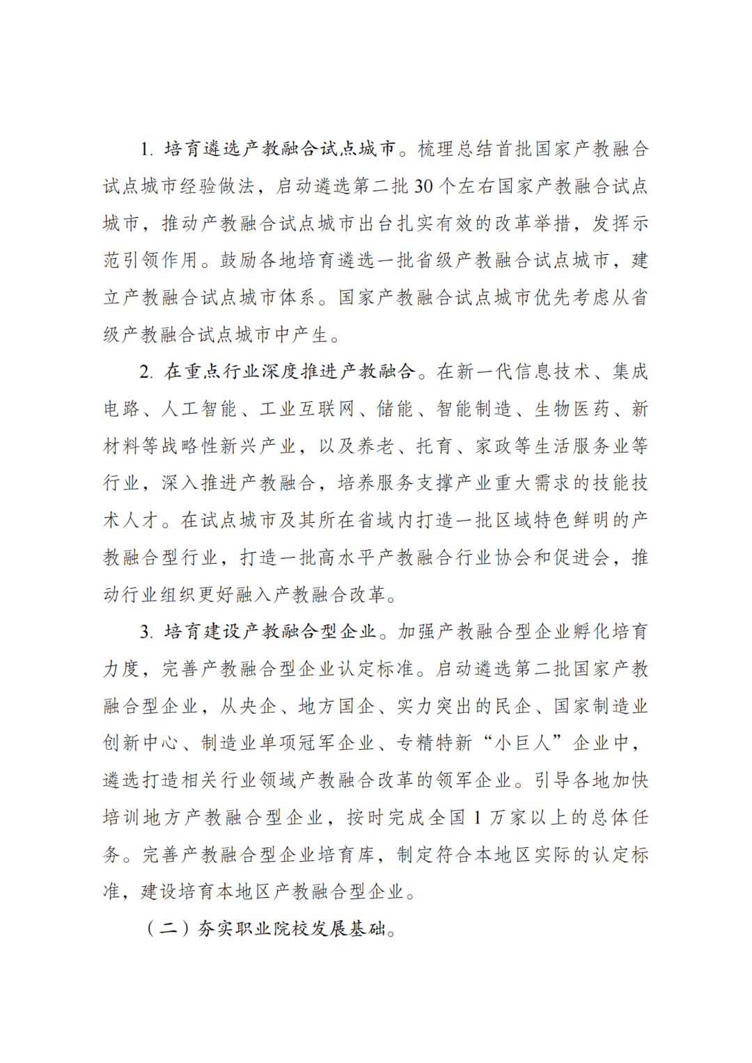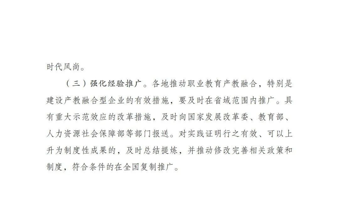 為推動職業(yè)教育產(chǎn)教融合高質(zhì)量發(fā)展,近日,國家發(fā)改委、教育部、工信部、財政部、人社部、自然資源部、中國人民銀行、國務院國資委等8部門聯(lián)合印發(fā)《職業(yè)教育產(chǎn)教融合賦能提升行動實施方案(2023—2025年)》,明確2025年國家產(chǎn)教融合試點城市達到50個左右、在全國建設培育1萬家以上產(chǎn)教融合型企業(yè)等一系列目標。