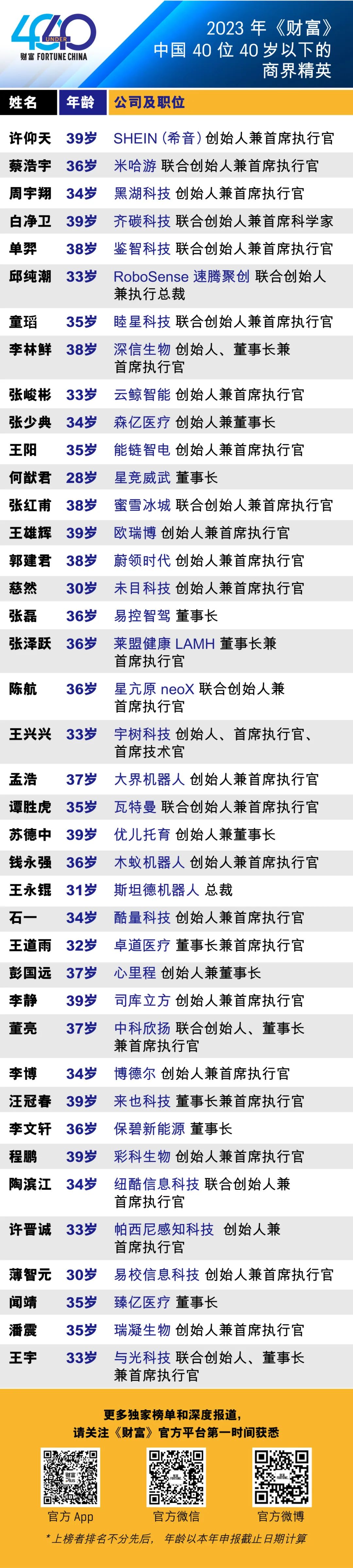 “2023年《財富》中國40位40歲以下的商界精英”全榜單