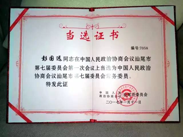 1月11日,中國人民政治協(xié)商會汕尾市第七屆委員會第一次會議順利閉幕,【心里程集團(tuán)】董事長彭國遠(yuǎn)連任汕尾市政協(xié)常務(wù)委員。1月7日,彭國遠(yuǎn)董事長當(dāng)選政協(xié)第七屆河源市委員會常務(wù)委員。