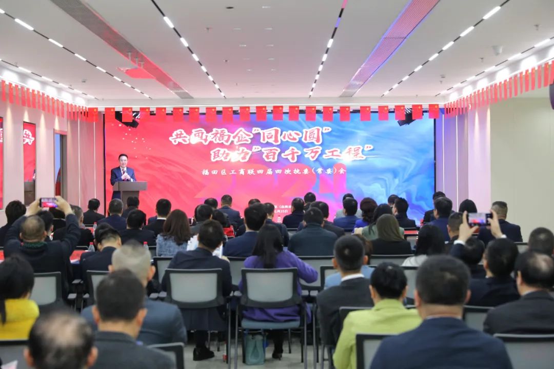 會(huì)議傳達(dá)學(xué)習(xí)了習(xí)近平總書記致中華全國工商業(yè)聯(lián)合會(huì)成立70周年賀信精神及福田區(qū)八屆三次黨代會(huì)暨區(qū)委經(jīng)濟(jì)工作會(huì)議、福田區(qū)“兩會(huì)”精神,發(fā)布福田區(qū)民營企業(yè)助力“百千萬工程”倡議書并舉行助力“百千萬工程”授旗儀式,增補(bǔ)了區(qū)工商聯(lián)(總商會(huì))專職副主席(副會(huì)長),通報(bào)表揚(yáng)了2023年度“四個(gè)最具”會(huì)員企業(yè)及2023年度“標(biāo)桿”街道商會(huì)、“四好”街道商會(huì)、“黨建引領(lǐng)”先進(jìn)街道商會(huì)和“優(yōu)秀秘書長”等單位和個(gè)人,并為其授牌頒獎(jiǎng)。彭錦環(huán)總裁代表心里程控股集團(tuán)領(lǐng)取2023年度“最具成長力”企業(yè)獎(jiǎng)牌。