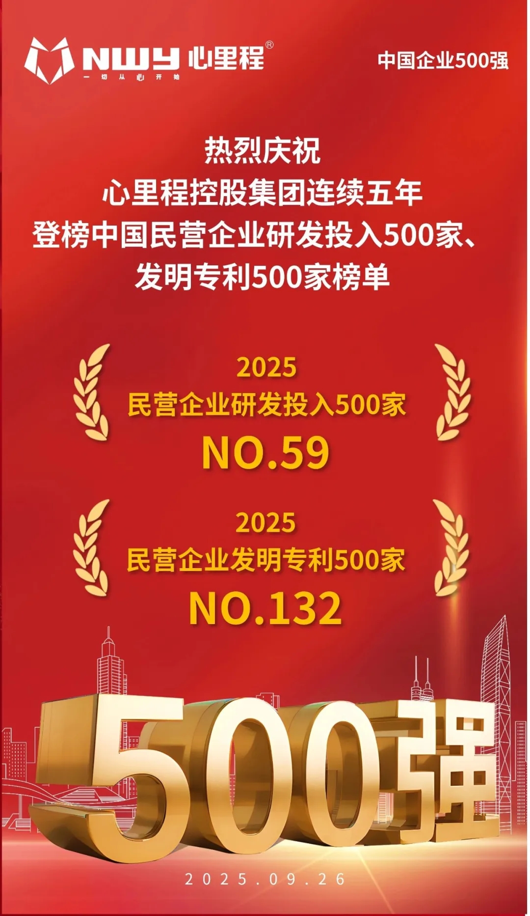 心里程集團榮登2025民營企業(yè)研發(fā)投入500家第59位
