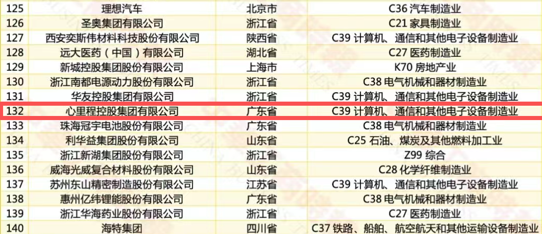 心里程集團榮登2025民營企業(yè)發(fā)明專利500家第132位