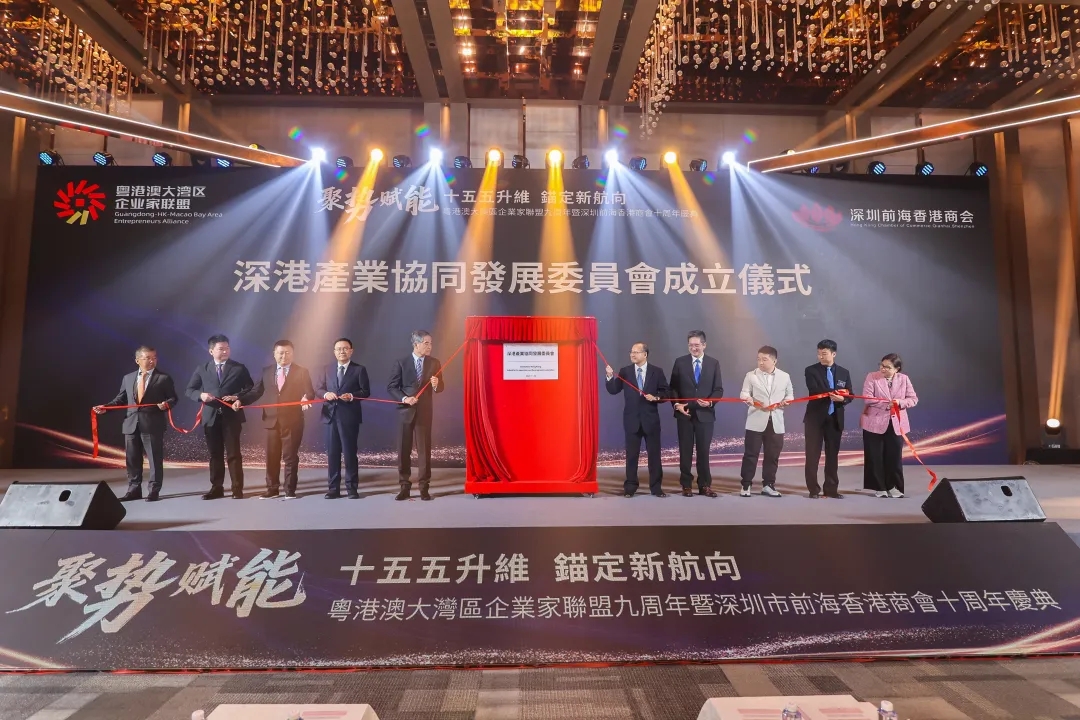 周年慶典上,“深港產(chǎn)業(yè)協(xié)同發(fā)展委員會”正式揭牌。該委員會將作為深港產(chǎn)業(yè)協(xié)同的重要統(tǒng)籌平臺,推動產(chǎn)業(yè)鏈供應鏈深度融合與資源要素高效流動。梁振英副主席、蔡冠深常委、陳百里局長、王守睿常委、姜力琨主任等領導為委員會成立揭牌。彭國遠董事長、深圳前?;浭畔⒓夹g有限公司董事長陳彬彬、深圳華芯科技控股有限公司董事長金鋼、深圳普瑞金生物藥業(yè)股份有限公司董事長栗紅建等嘉賓作為鏈主企業(yè)上臺見證。