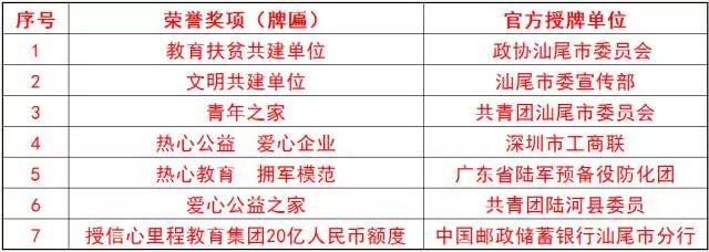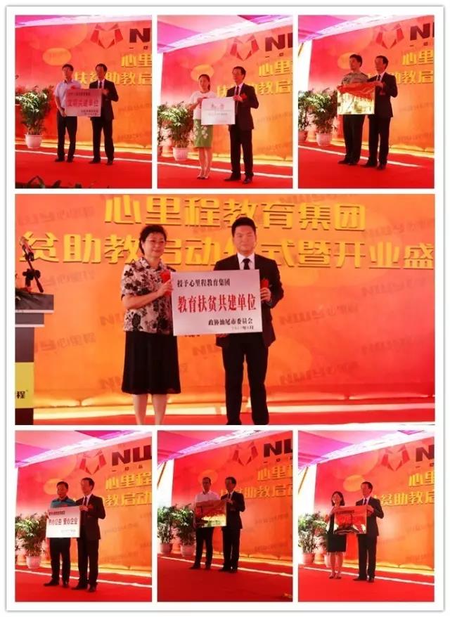 活動(dòng)舉行了隆重的授牌儀式。政協(xié)汕尾市委員會(huì)授予心里程教育集團(tuán)“教育扶貧共建單位”,汕尾市委宣傳部授予心里程教育集團(tuán)“文明共建單位”,共青團(tuán)汕尾市委員會(huì)授予心里程教育集團(tuán)“青年之家”,深圳市工商聯(lián)授予心里程教育集團(tuán)“熱心公益 愛心企業(yè)”,廣東省陸軍預(yù)備役防化團(tuán)授予心里程教育集團(tuán)“熱心教育 擁軍模范”,共青團(tuán)陸河縣委員會(huì)授予心里程教育集團(tuán)“愛心公益之家”,中國(guó)郵政儲(chǔ)蓄銀行汕尾市分行授信心里程教育集團(tuán)“20億人民幣額度”。