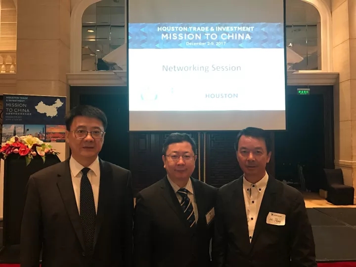 左起:深圳市貿(mào)易促進委員會部長劉星、中國駐休斯敦副總領(lǐng)事王昱、彭錦環(huán)會長