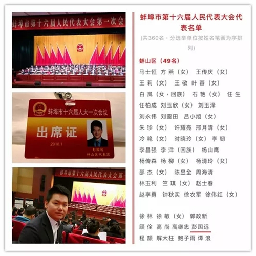 2018年1月5日,安徽省蚌埠市第十六屆人民代表大會(huì)第一次會(huì)議隆重開幕,彭國遠(yuǎn)董事長作為新當(dāng)選的人大代表,出席會(huì)議。