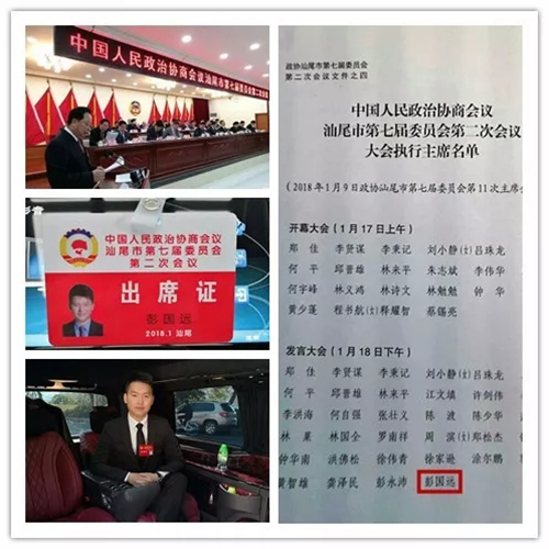 2018年1月17日,中國人民政治協(xié)商會(huì)議汕尾市第七屆委員會(huì)第二次會(huì)議在汕尾市政府三樓會(huì)議廳隆重開幕,彭國遠(yuǎn)董事長作為汕尾市政協(xié)常委出席了本次會(huì)議。
