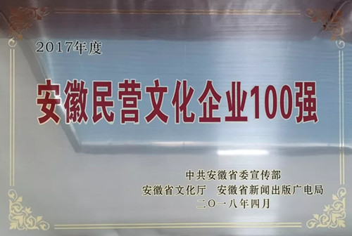 喜訊 | 安徽心里程成功入選“2017年度安徽民營文化企業(yè)100強(qiáng)”