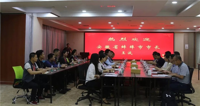 ??2014年7月,時任蚌埠市委常委、副書記王誠帶領蚌山區(qū)委、區(qū)政府等領導到心里程集團深圳總部考察招商。