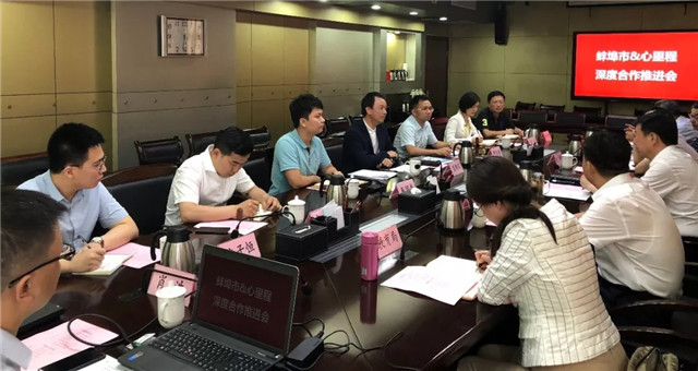 考察首日,王誠市長主持召開了“蚌埠市&心里程深度合作推進(jìn)會”,雙方就蚌埠市與心里程集團(tuán)進(jìn)一步推進(jìn)深入合作,進(jìn)行座談交流。蚌埠市政府秘書長吳道俊、蚌埠市金融辦主任黃平、蚌埠市教育局局長烏蘭其其格、蚌埠市文廣新局局長袁政、蚌埠市蚌山區(qū)副區(qū)長沈明舉等出席會議。