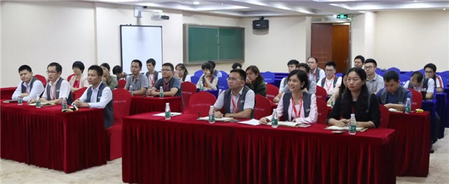 馮仁剛常務(wù)副總裁(前排中)出席講師團(tuán)培訓(xùn)并為考核學(xué)員作指導(dǎo)