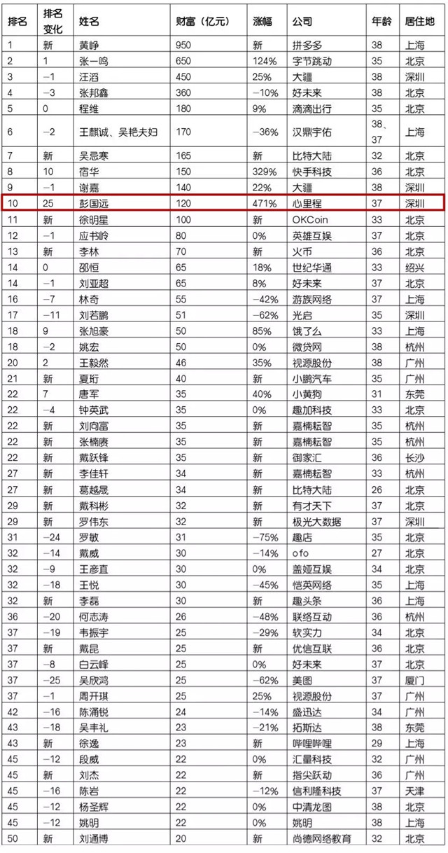 榮登《2018胡潤80后白手起家富豪榜》第十位