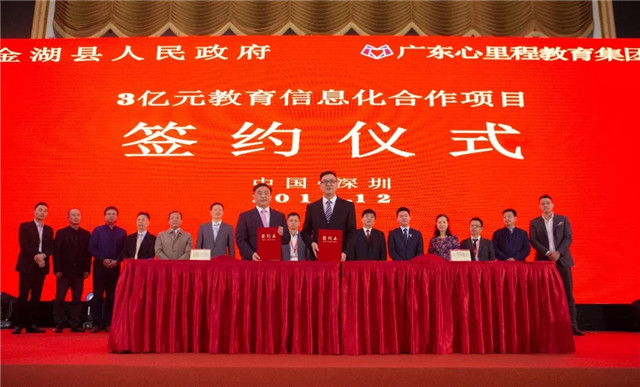 簽約儀式上,心里程教育集團常務副總裁馮仁剛與金湖縣縣長徐亞平分別代表雙方,就教育信息化合作項目簽署戰(zhàn)略合作協議。心里程教育集團再獲3億元教育信息化訂單!