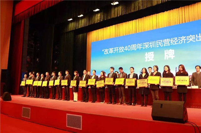 “改革開放40周年深圳民營經(jīng)濟突出貢獻企業(yè)”授牌