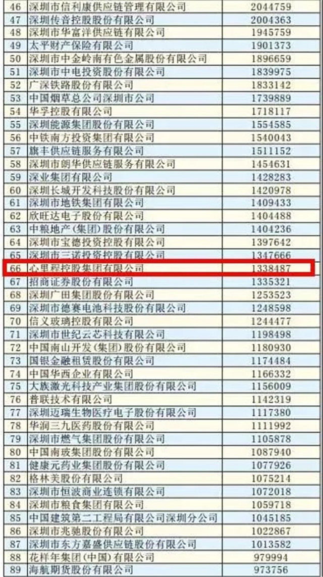 心里程集團(tuán)榮登“2018深圳500強(qiáng)企業(yè)”榜單第66位
