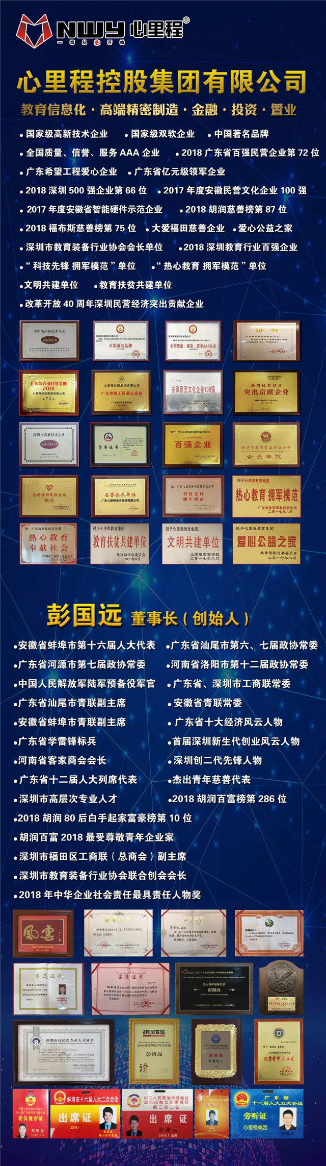 歷經(jīng)十余年的發(fā)展和沉淀,目前心里程集團(tuán)已成為擁有四個(gè)集團(tuán)子公司,數(shù)十家控股參股公司的百億企業(yè),產(chǎn)業(yè)涉及教育信息化、高端精密制造、投資、置業(yè)等領(lǐng)域,并榮獲了“國(guó)家級(jí)高新技術(shù)企業(yè)”、“國(guó)家級(jí)雙軟企業(yè)”、“2018年廣東省百?gòu)?qiáng)民營(yíng)企業(yè)”、“改革開(kāi)放40周年深圳民營(yíng)經(jīng)濟(jì)突出貢獻(xiàn)企業(yè)”等諸多榮譽(yù)稱號(hào)。